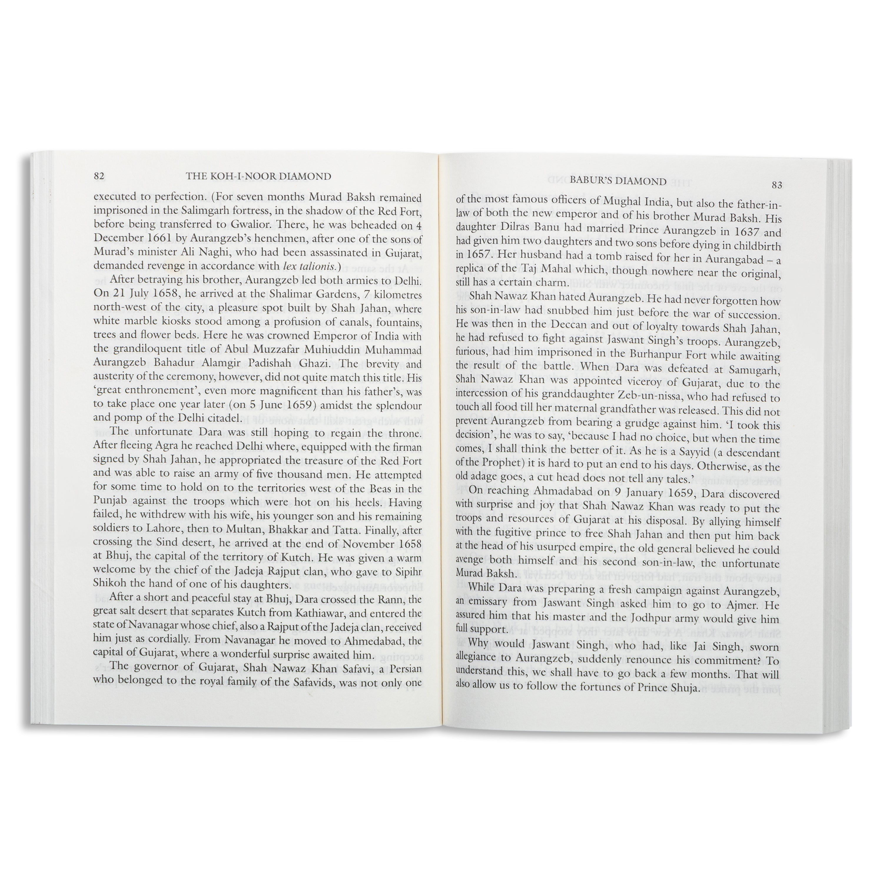 A courtesan had told Nadir Shah that the priceless diamond lay hidden in Mohammed Shah's turban. Citing an ancient tradition, the victor demanded an exchange of headgear. At last the diamond was his. Or was it? Hastily he undid the folds¦ Wonderstruck at the gem's size, brilliance and beauty, he exclaimed, Koh-i-noor'! 1739: the gem now had a name. One fabulous diamond whose value could feed the entire world for two-and-a-half days. Four races: Indian, Afghan, Persian and English, whose destinies were inextricably involved with this gem. A Persian oilman's son who went on to virtually rule Golconda and its vast diamond mines. A Mughal prince, hated by history, who was sinned against as much as sinning. Only an Indian or a Persian could tell this great story with all its nuances.