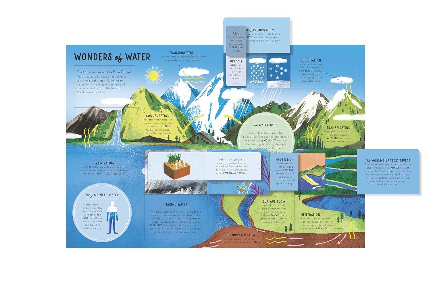 Young readers will explore the geography and geology of our planet together with the interactive charts that explain everything from the water cycle to our changing skies.