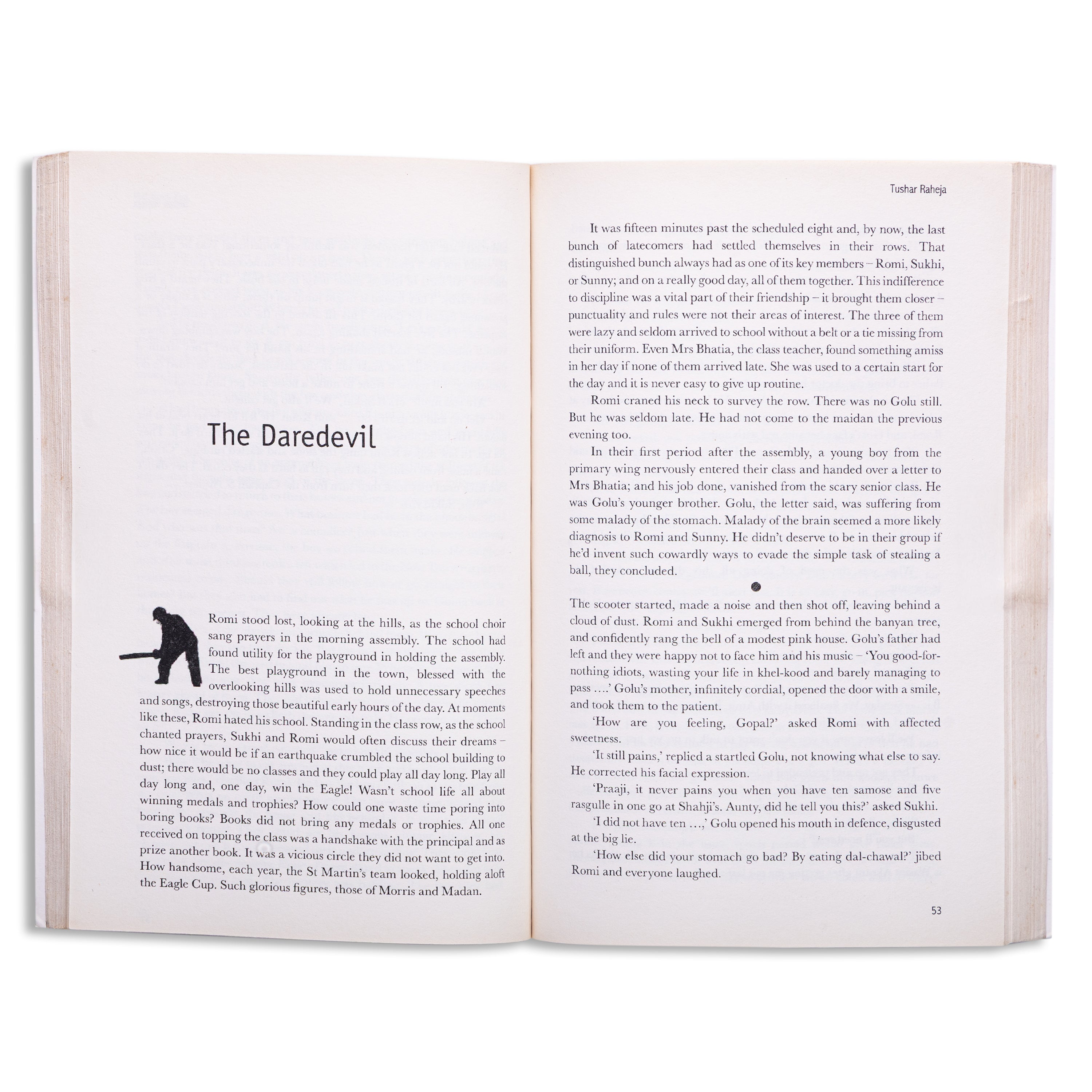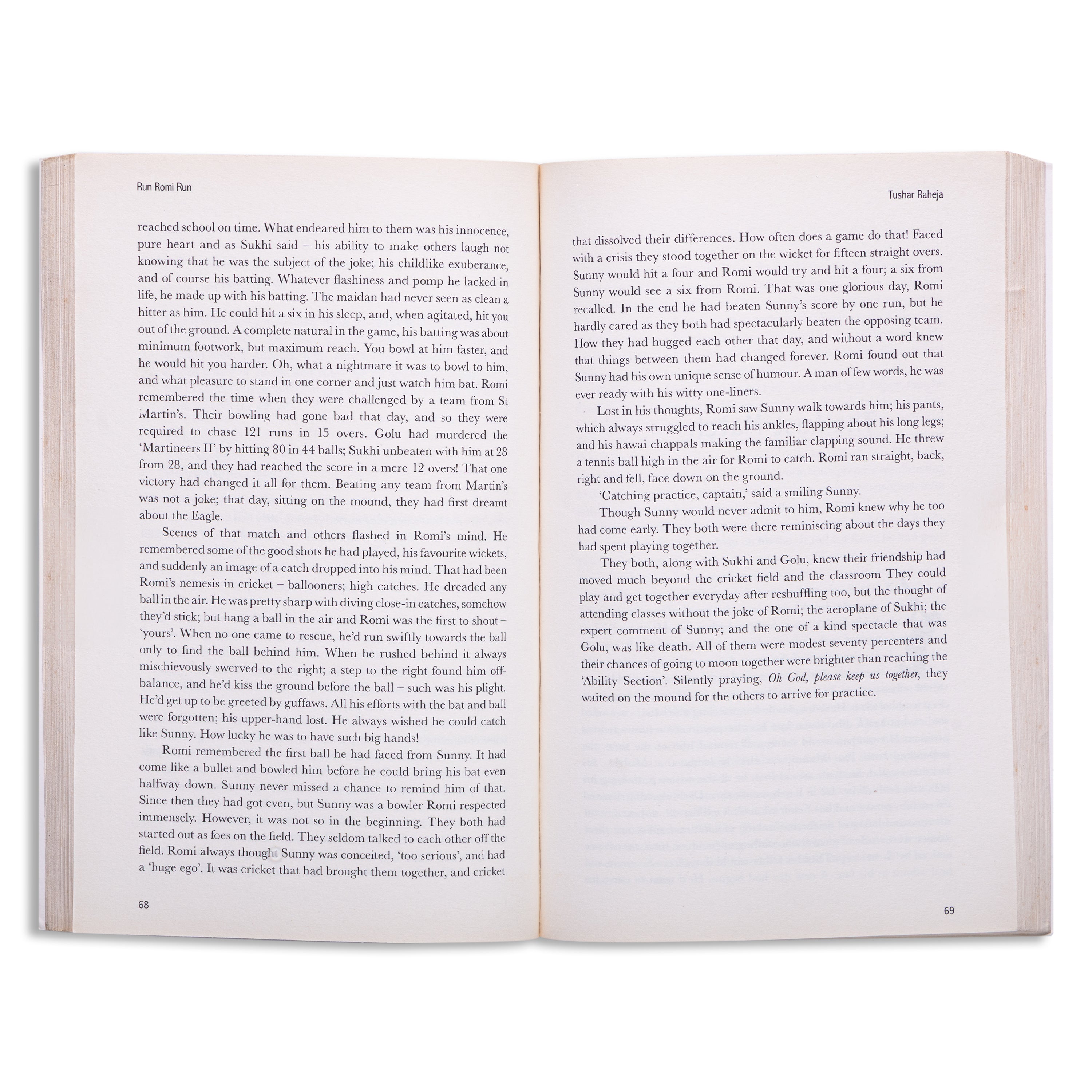 Quickly he threw off his schoolbag, swallowed his lunch. Bouncing expertly the ball on his bat, with school shirt intact " collar up, half hanging out of his half-pants " Romi, looking no better than a street urchin, merrily marched on towards the maidan Unruly, restless and impulsive, all of thirteen years, Romi is the hero of his world. And sharing his great affinity for adventure and unknown are his three friends:--the rascal Sukhi, the deadpan Sunny and the naïve Golu. There is never a dull moment for the four, in school or in the maidan where most of their life is spent battling for their dream - Lifting of the Eagle, annual inter-school cricket cup. Set in the laidback and idyllic town of Mauji, Run Romi Run is the story of Romi’s journey from a spirited reckless town boy to a disciplined young man. A poignant tale of loss and triumph, this book is a reminder of the unaffected dreams of childhood and the lost child in all of us.
