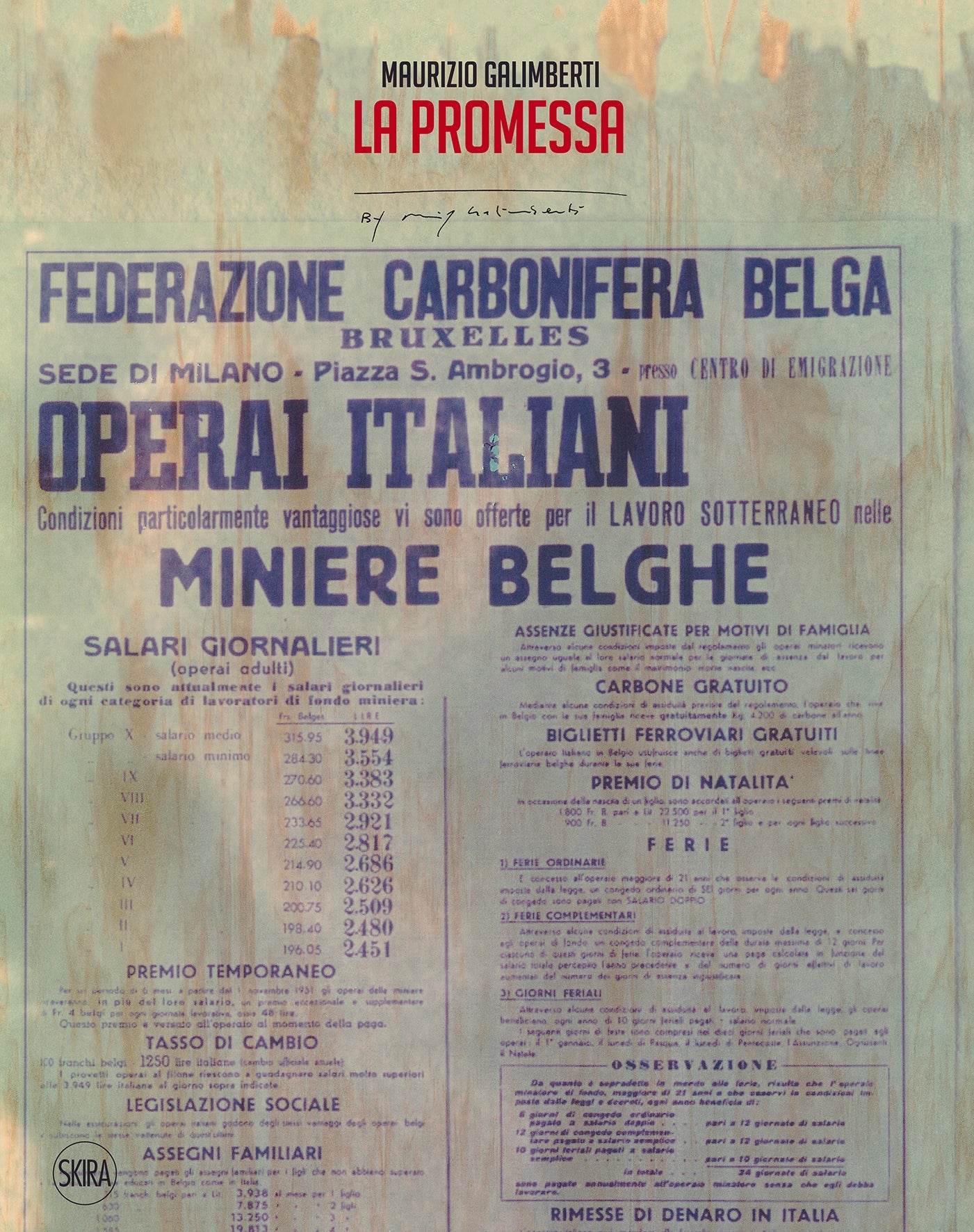 One August morning at Marcinelle, Maurizio Galimberti pointed his camera upwards and for several hours shot the same subject, which turned out differently in each of the 262 images. One for each of the victims of the disaster that occurred on the morning of 8 August 1956 in the same Belgian mining town, claiming the lives of 262 miners. A photographer and artist of international renown, Maurizio Galimberti is famous for working almost exclusively with Polaroid, developing an extremely personal manipulation technique to deconstruct and reconstruct the image. In this new book, Galimberti tackles the terrible tragedy of Marcinelle, 66 years later: his “reuse” of images is intended to inform. He delves into what has already been pho[1]tographed to unearth a meaning that has remained buried, a soul within the mechanical body. He contextualizes, historicizes. And so the images pass before our eyes: a woman orphaned as a child; the face of another woman behind the bars that separate her from the tragic truth; the lined-up coffins; the poster to recruit mine workers; the miners’ huts; the daunting elevator for descending into the depths of the earth. And, lastly, the portrait of Urbano Ciacci, the last survivor of the tragedy. Maurizio Galimberti (Como, 1956) has been active on the international art scene for over 30 years. He is world famous also for his portraits of stars like Lady Gaga, Robert De Niro and Johnny Depp. He was world testimonial for Polaroid International and critics now consider him an instant artist, rather than just a photographer.