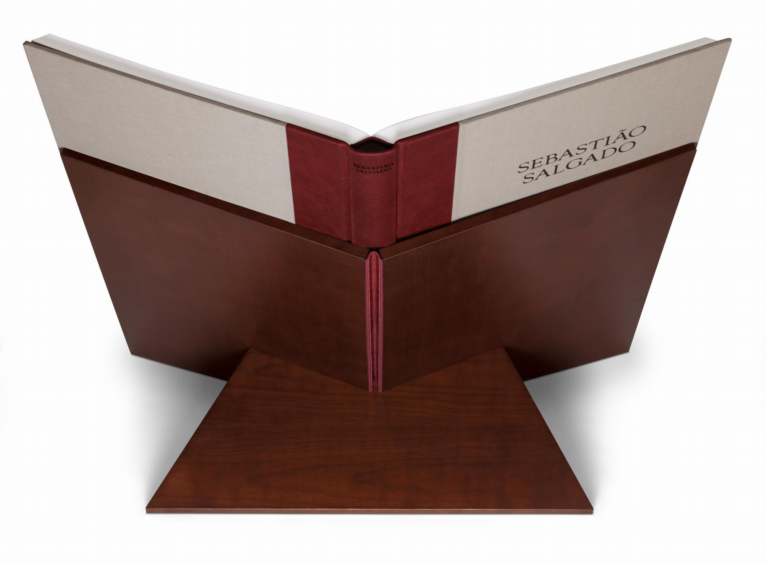 This two-volume SUMO-size edition is designed and edited by Lélia Wanick Salgado and numbered and signed by Sebastião Salgado. Quarter-leather bound, it is presented with a bookstand in cherry wood veneer designed by Tadao Ando and a clothbound caption book explaining each stunning shot.