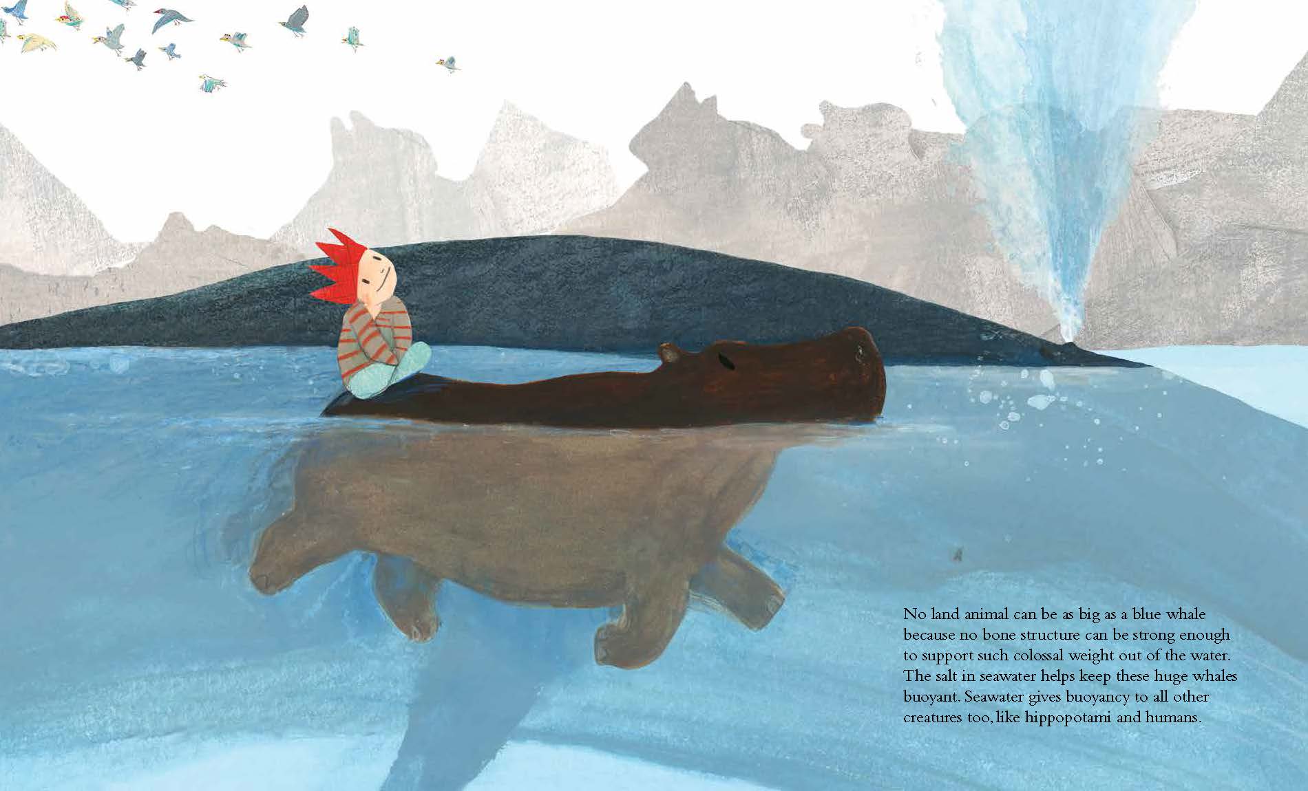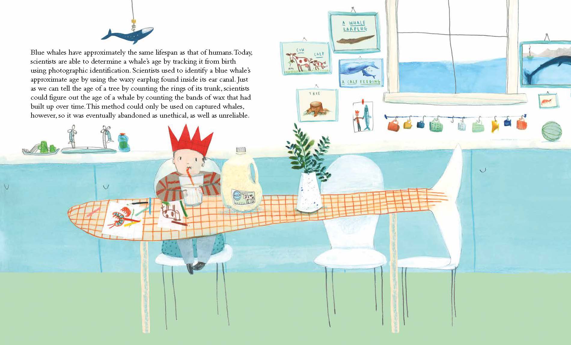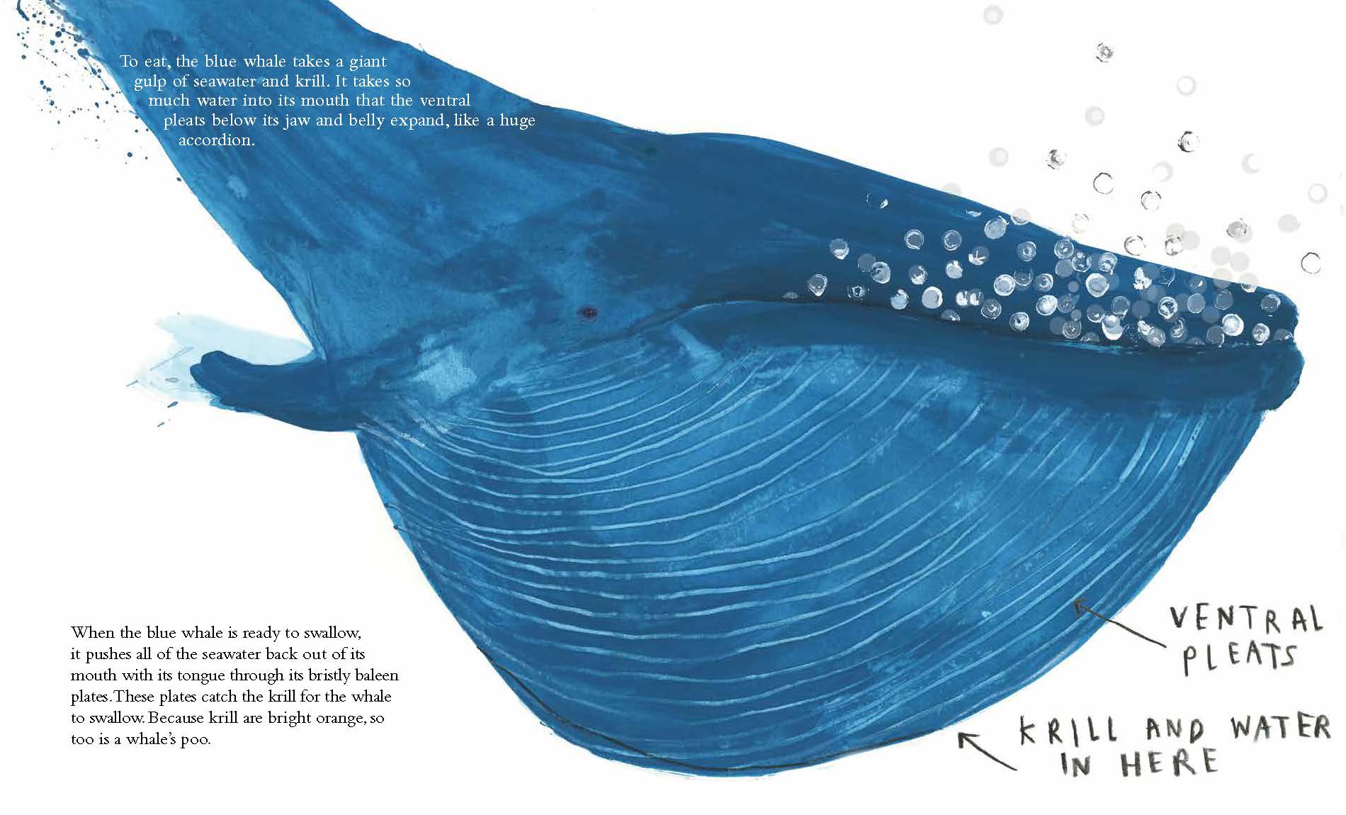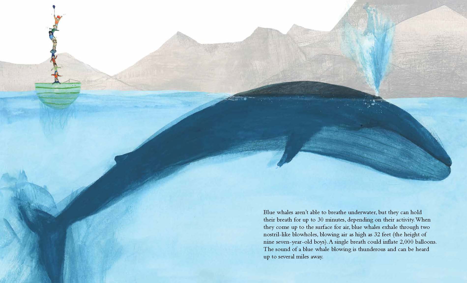 A nonfiction picture book, The Blue Whale draws children into the life and world of this enormous whale by situating facts within a familiar context that is fun and engaging. Here, readers are given the actual size of an eye right on the page, and we are informed how understand this whale's body size in relation to trucks, cars, milk bottles, and hippos! With an accurate and engaging text, fully vetted by a blue whale expert, and lyrically lovely illustrations, The Blue Whale is a book that invites children in and holds their attention. Its tempo is like a pleasing melody, which means that the information never becomes too weighty or exhausting—a key thing when it comes to young readers and their enjoyment of a book!